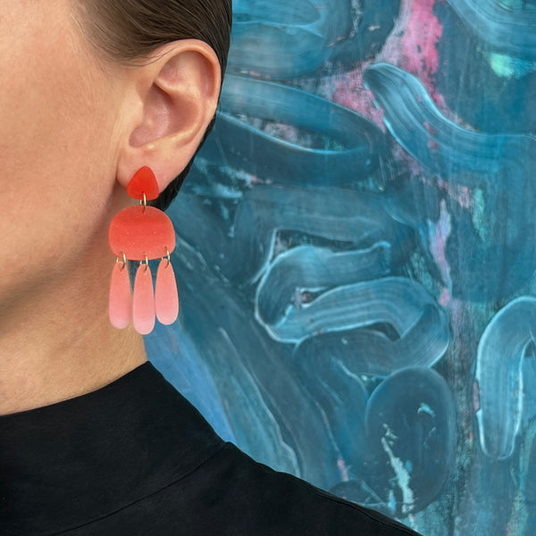 - Materials: hand-poured and colored resin, 14/20 gold filled metal, silicone earring backs